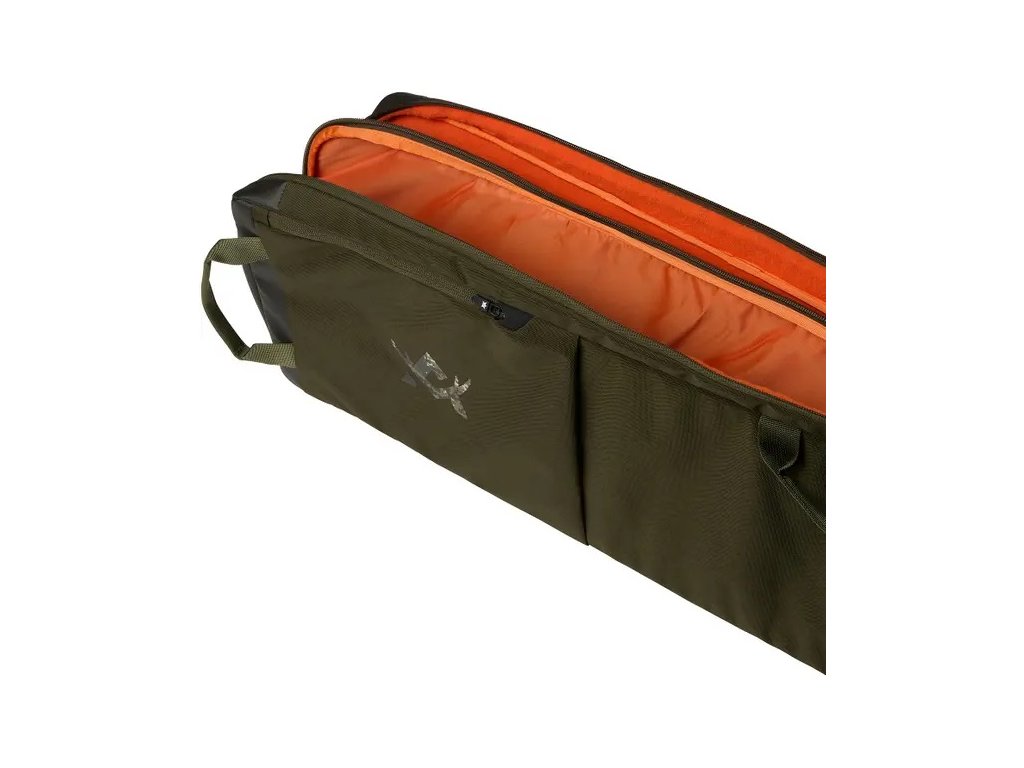 Po celé délce tašky vede robustní obousměrné zapínání, které umožňuje přístup z jakékoli strany. Na vnější straně nechybí větší kapsa na náboje nebo další nezbytnosti pro lov.