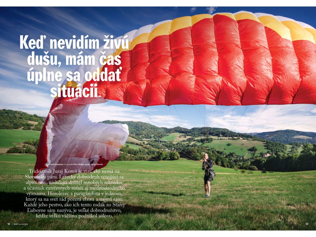 Tridsiatnik Juraj Koreň je zjav, aký nemá na Slovensku páru. Letecký dobrodruh venujúci sa alpinizmu, niekdajší držiteľ mnohých rekordov a účastník extrémnych súťaží aj medzinárodného významu. Horolezec a paraglajdista v jednom, ktorý sa na svet rád pozerá zhora a najmä sám. Každé jeho pestvo, ako ich tento rodák zo Starej Ľubovne sám nazýva, je veľké dobrodružstvo, keďže veľkú väčšinu podnikol sólovo.