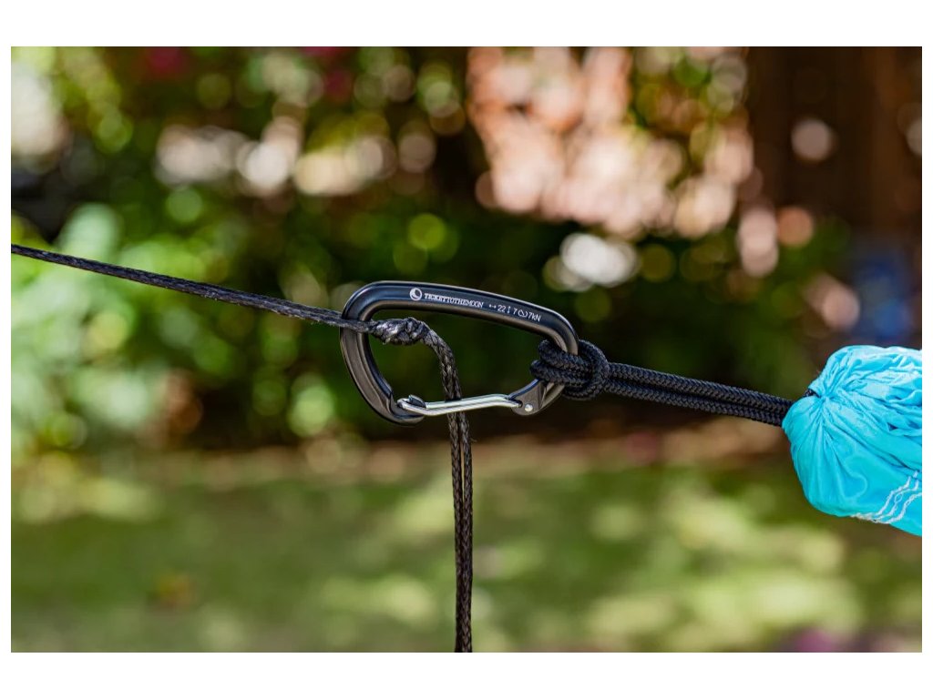 Karabiny TTTM 22 kN je tím pravým parťákem pro velké dobrodružství. Robustní, ale elegantně čistý design, z leteckého hliníku A7075. V ultralehkém provedení važícím pouze 34 g, unese až 2200 kg (22 kN), což ti poskytne naprostý klid i při velkých zátěžích... Třeba XXL hamace nebo zavěšení výbavy. Ideální pro ty, kdo hledají sílu bez zbytečné hmotnosti. (Ale pozor — není určený pro lezení či jištění.)