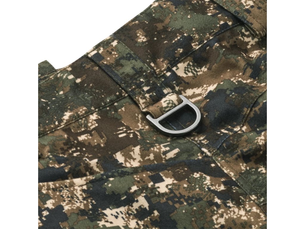 Pět kapes včetně stehenních a zadní kapsy na zip, D‑kroužek pro závěs zvěře