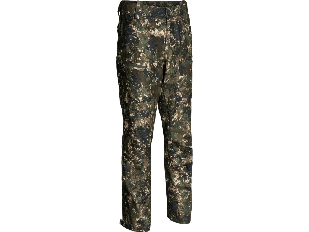 Kalhoty jsou lehké, ale robustní, téměř nešustí, což oceníš při tichém lovu i na posedu. Mají pět kapes, včetně dvou stehenních a zadní kapsy na zip, praktický D-kroužek na opasek a boční ventilační zipy, které pomůžou v teplejších chvílích. Elastický pas a stahování dole u nohou zase zajistí komfort i při nošení vysokých bot.