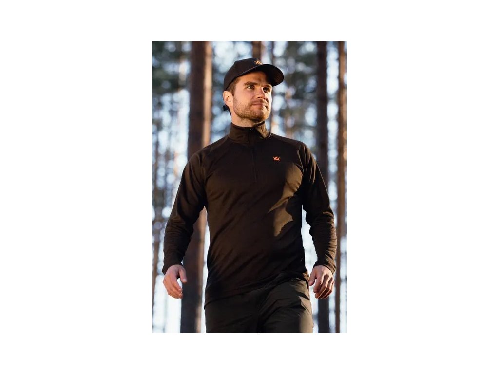 Lehký, prodyšný a extrémně rychleschnoucí materiál spolehlivě odvádí pot, zatímco vnitřní struktura pomáhá udržet tělesné teplo. Půlzip umožňuje rychle regulovat teplotu... zapneš, když sedíš na posedu, rozepneš, když se přesouváš. Díky pružné konstrukci se tričko přizpůsobí každému pohybu, ať se plížíš v hustém porostu nebo se prodíráš ranní mlhou.