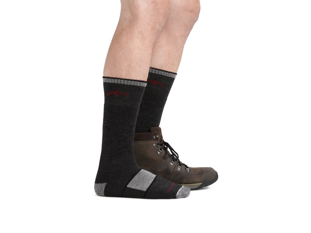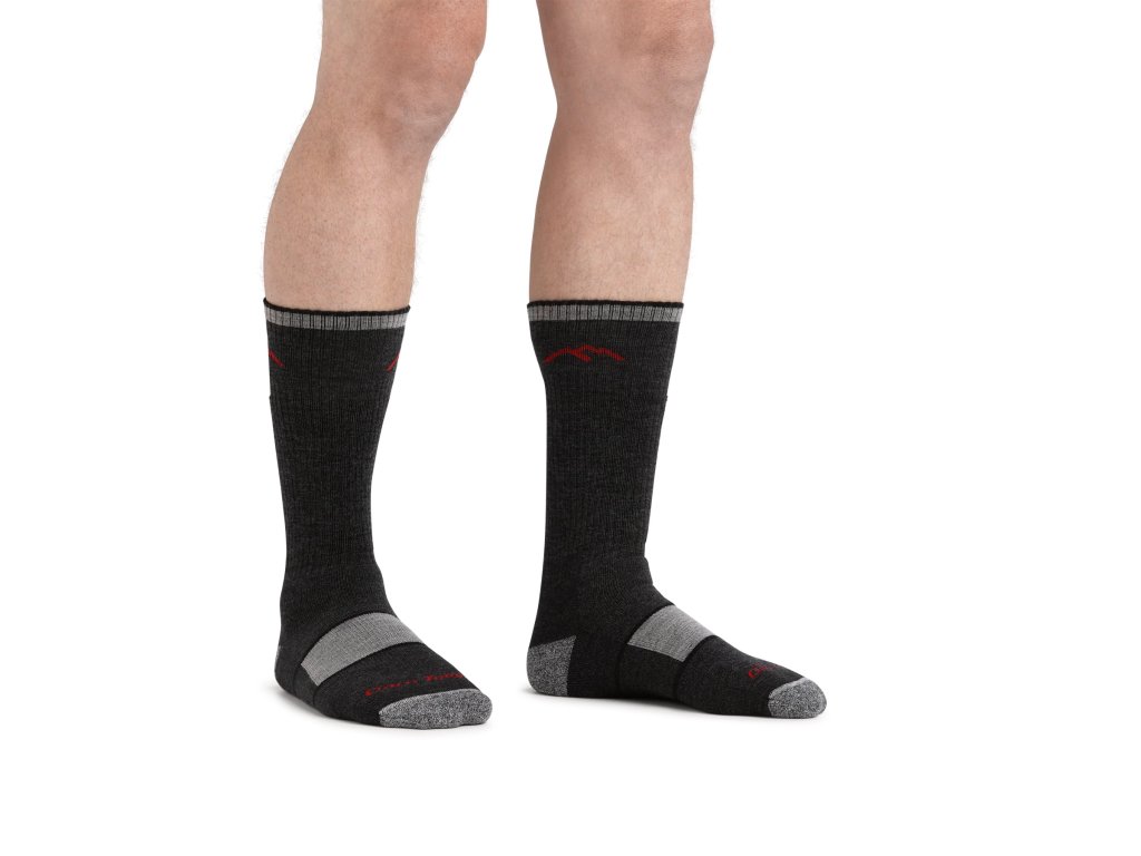 Pánské turistické merino ponožky Darn Tough Hiker Boot Full Cushion jsou vyšší model sahající nad kotník, určený pro náročné túry a dlouhé výlety v členitém terénu. Díky plnému polstrování od špičky až po manžetu poskytují vynikající pohodlí, tlumení nárazů a ochranu nohy i lýtka při chůzi v těžších turistických botách.