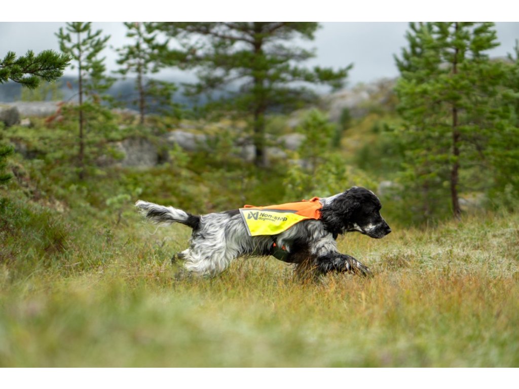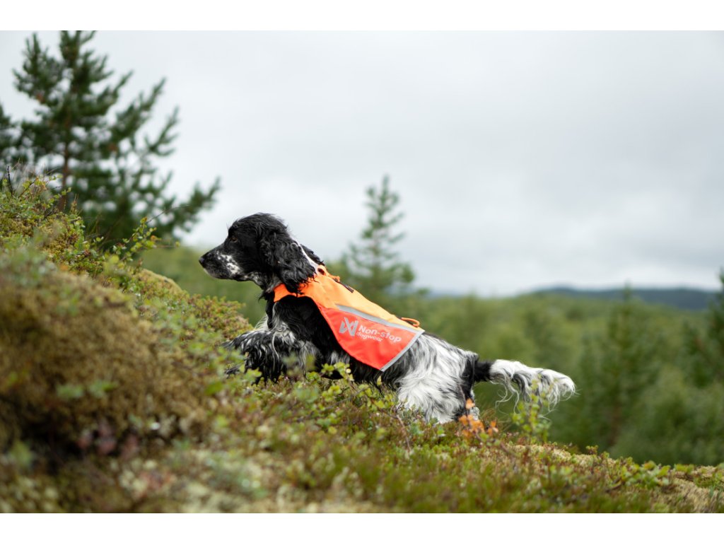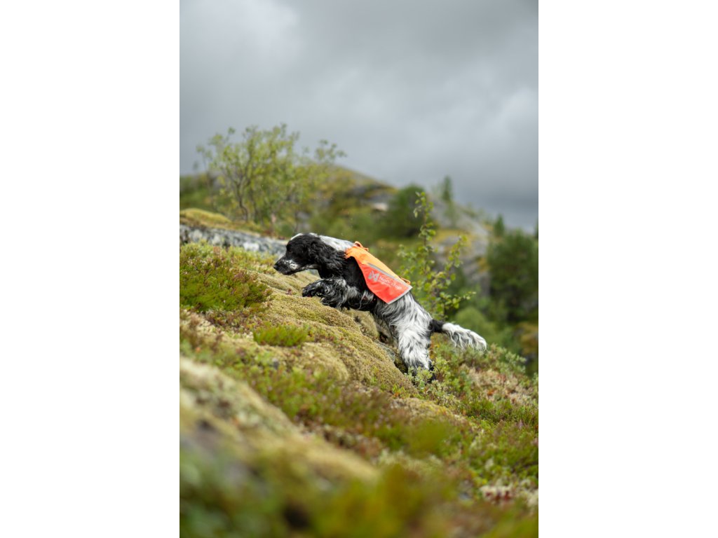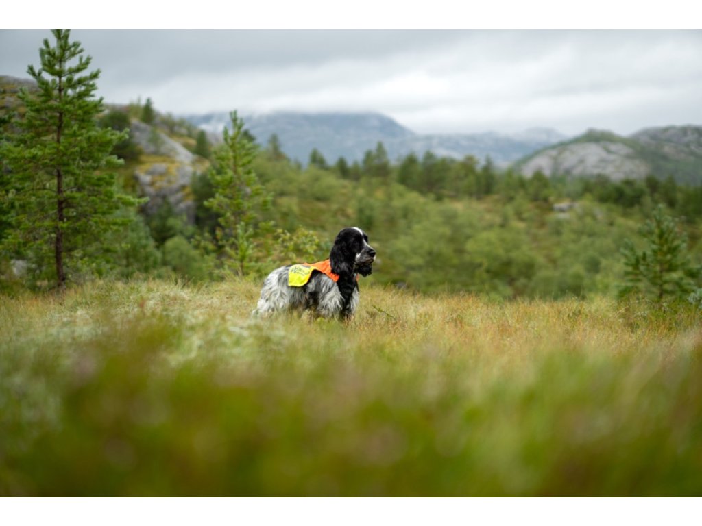Bezpečnost a viditelnost při lovu: Reflexní prvky a jasná barva zvyšují bezpečnost psa při mysliveckých výpravách.