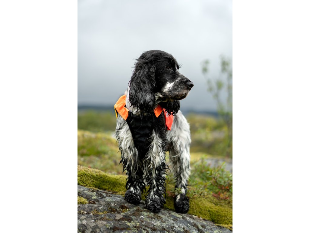 Velkou výhodou vesty je kombinace odolných materiálů a reflexních prvků. Aramidová vlákna chrání hrudník psa před trny, větvemi či ostrými předměty, zatímco jasně oranžová barva a reflexní detaily zajistí, že bude pes dobře vidět i za šera, v dešti nebo během lovu. Elastický límec a nastavitelné boční popruhy umožňují pohodlné uchycení a perfektní přizpůsobení tělu psa, takže vesta nijak neomezuje pohyb.