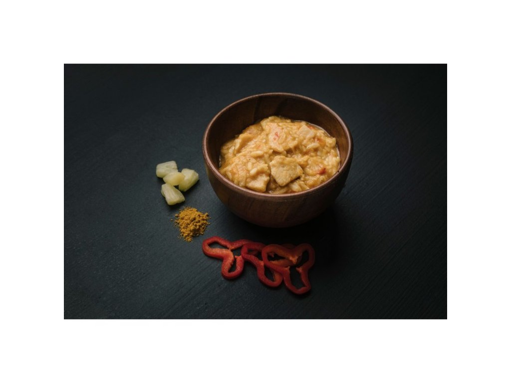 Složení: | rýže, cibule, kuřecí maso (kuře 89%, sůl, pepř, stabilizátor E450), paprika 11,1%, řepkový olej, ananas 7,4%, pšeničná mouka, kukuřičný škrob, kuřecí bujón (aroma, maltodextrin, kuřecí maso, kvasnicový extrakt, sůl, cibule, koření), kari (hořčice) 0,8%, koření, antioxidant (extrakt z rozmarýnu, kyselina askorbová) |